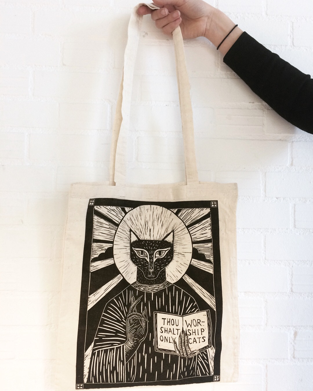 Linocut printed by hand on a white tote bag, €15 (excl. shipping)